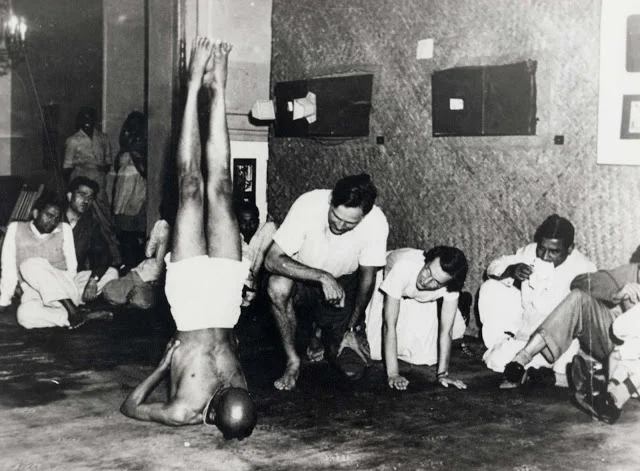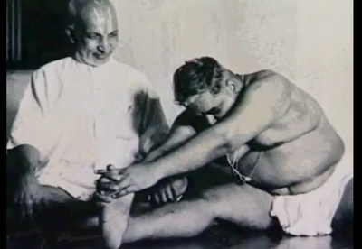 T. Krishnamacharya teaching the yoga posture Janu Sirsasana